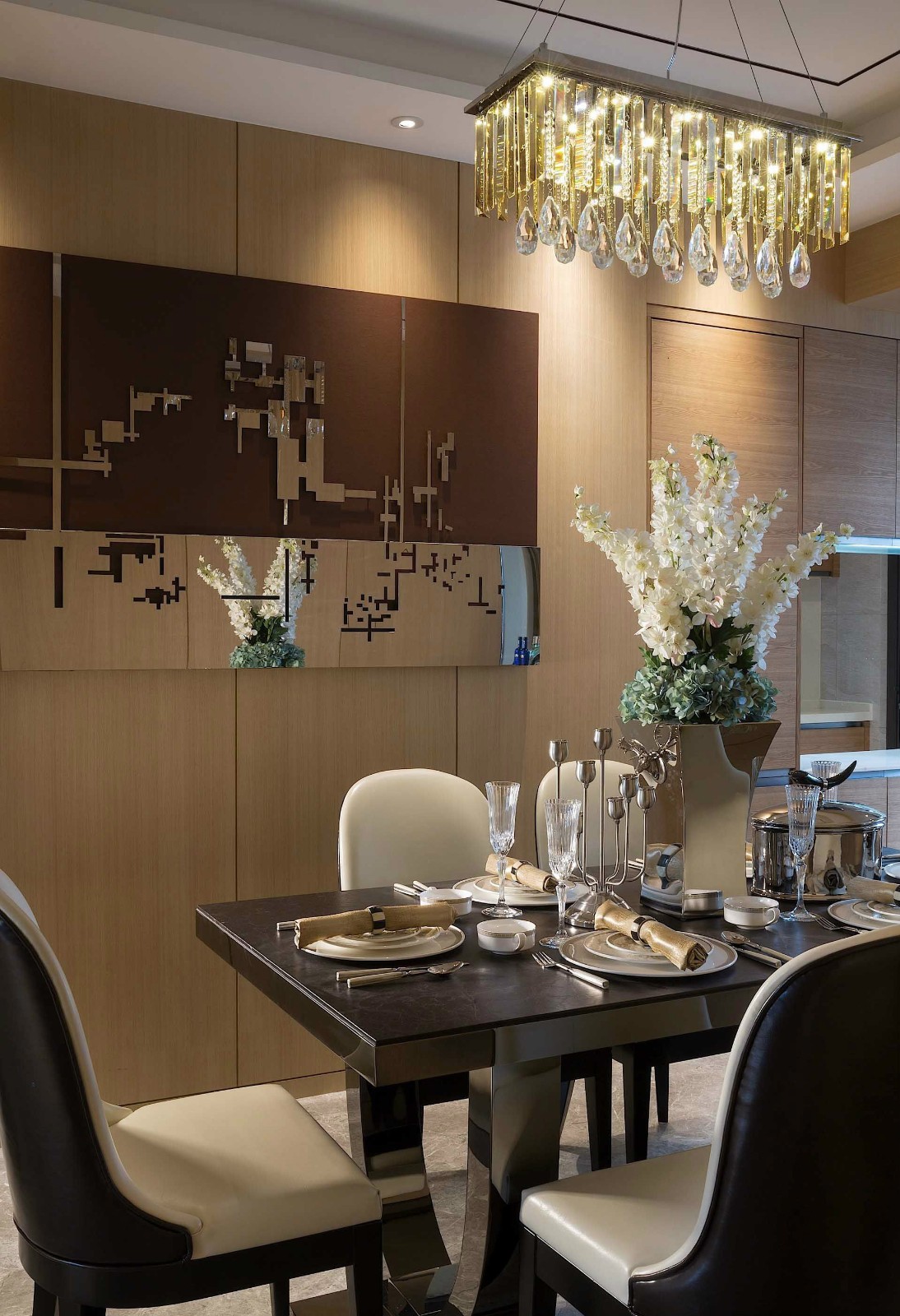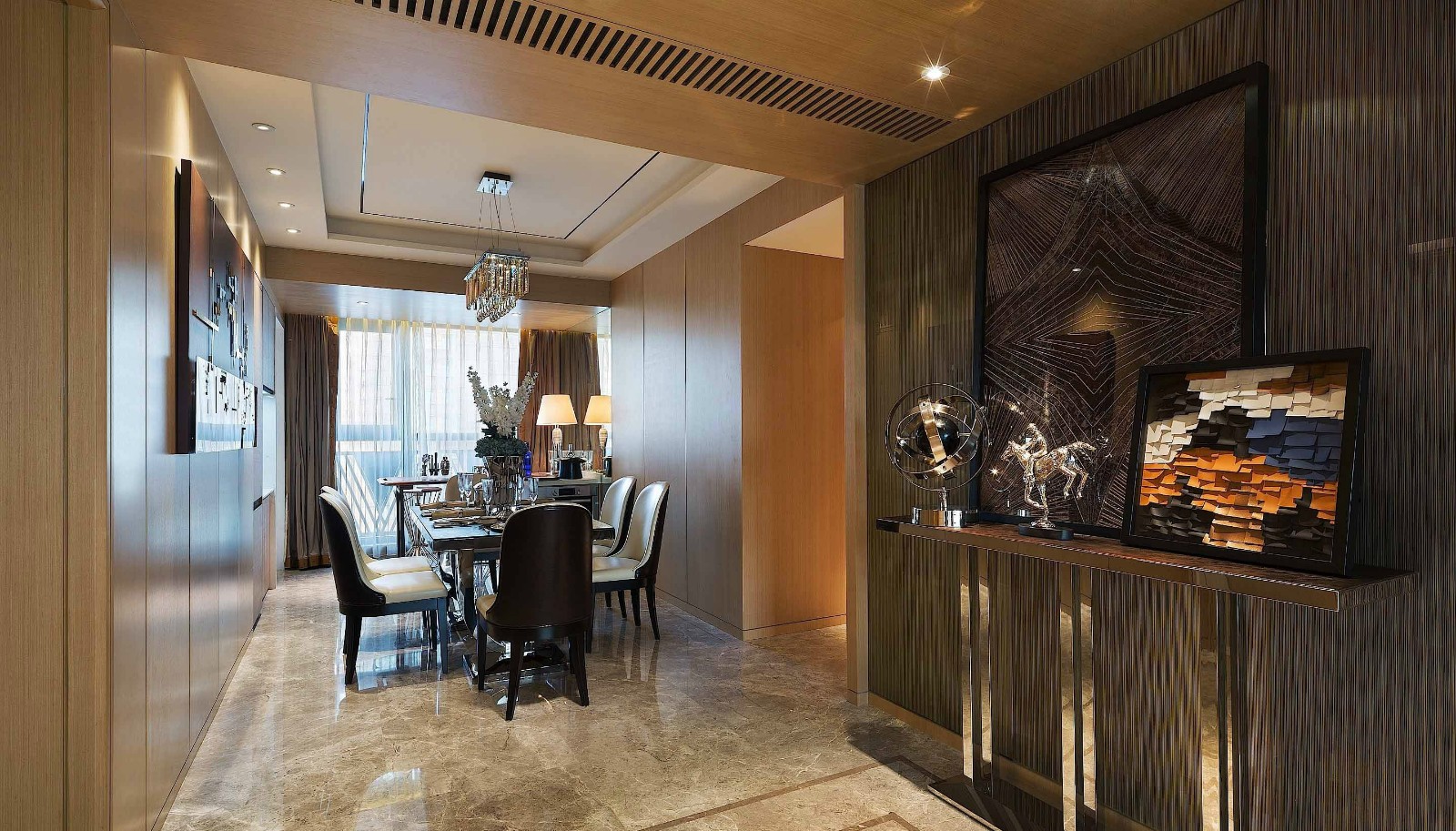 飾面板的運用使整體空間雅致時尚,體現了港式的味道,連餐桌也變得這么吸睛