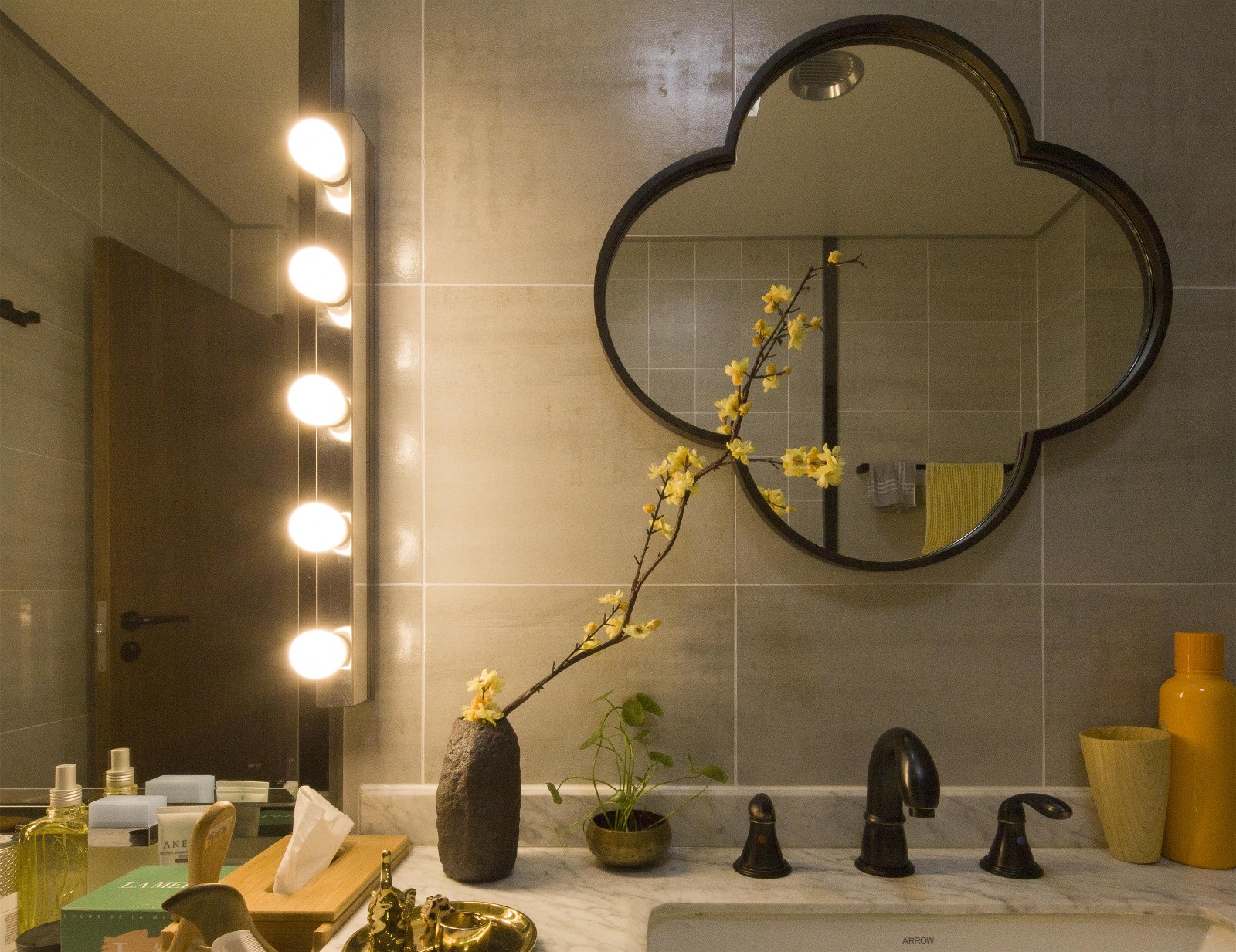 衛(wèi)生間在花團(tuán)簇?fù)硐拢度ヒ惶旃ぷ鞯钠v,也是對(duì)美好事物的心靈對(duì)話。