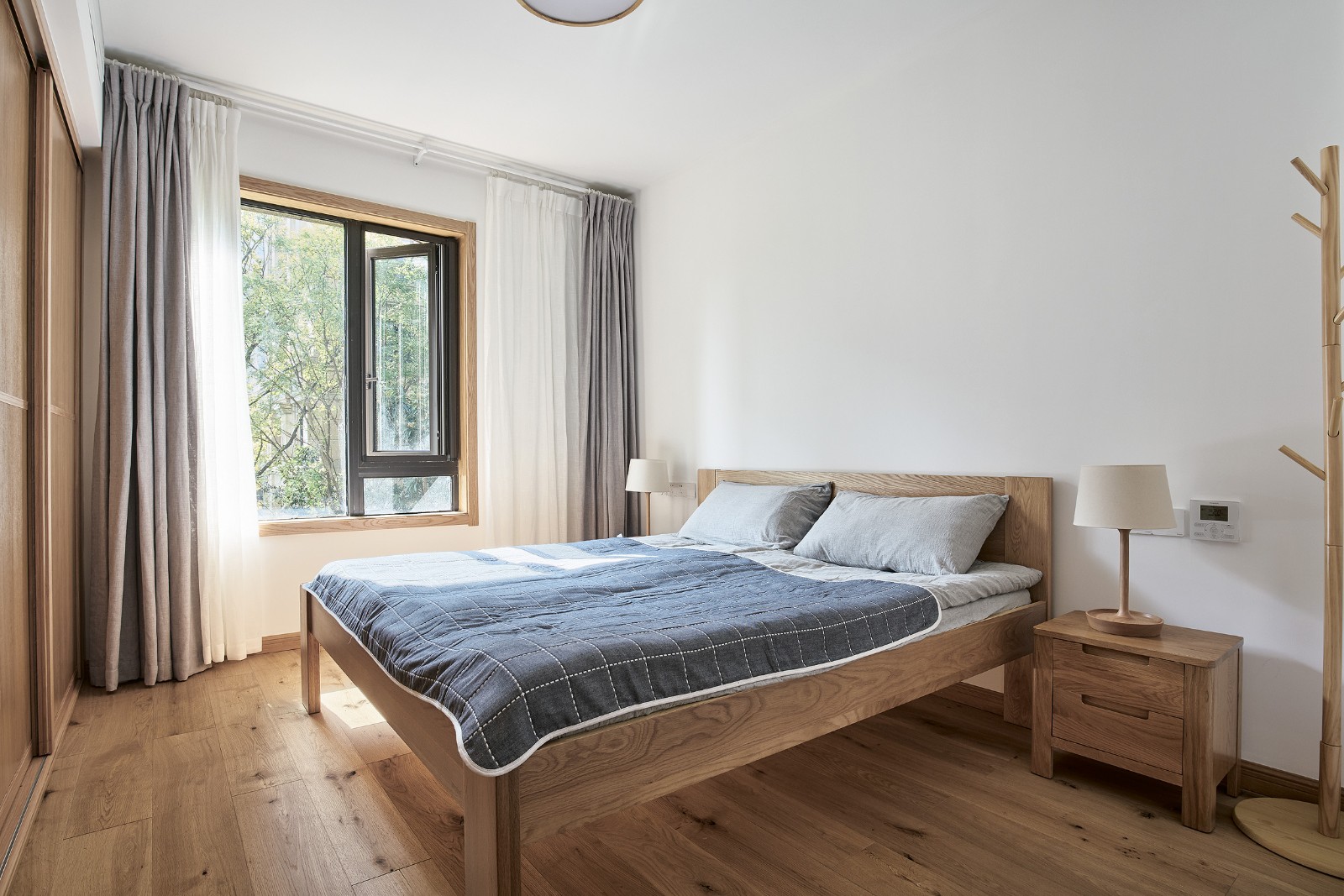 自然安寧的臥室,營造理想的睡眠環境。整面的儲物柜保證房間的干凈整潔。