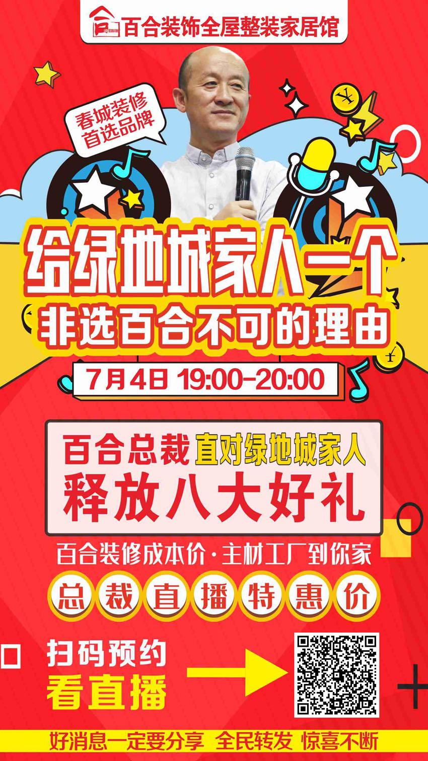 7月4號百合裝飾 總裁直播 綠地城小區專場福利團購活動!